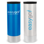 The 18 ounce Bullet Tumbler has a slender silhouette and is named for its stainless steel base reminiscent of a gun shell. The sleek look is completed with a low-profile, threaded flat flip-top lid.